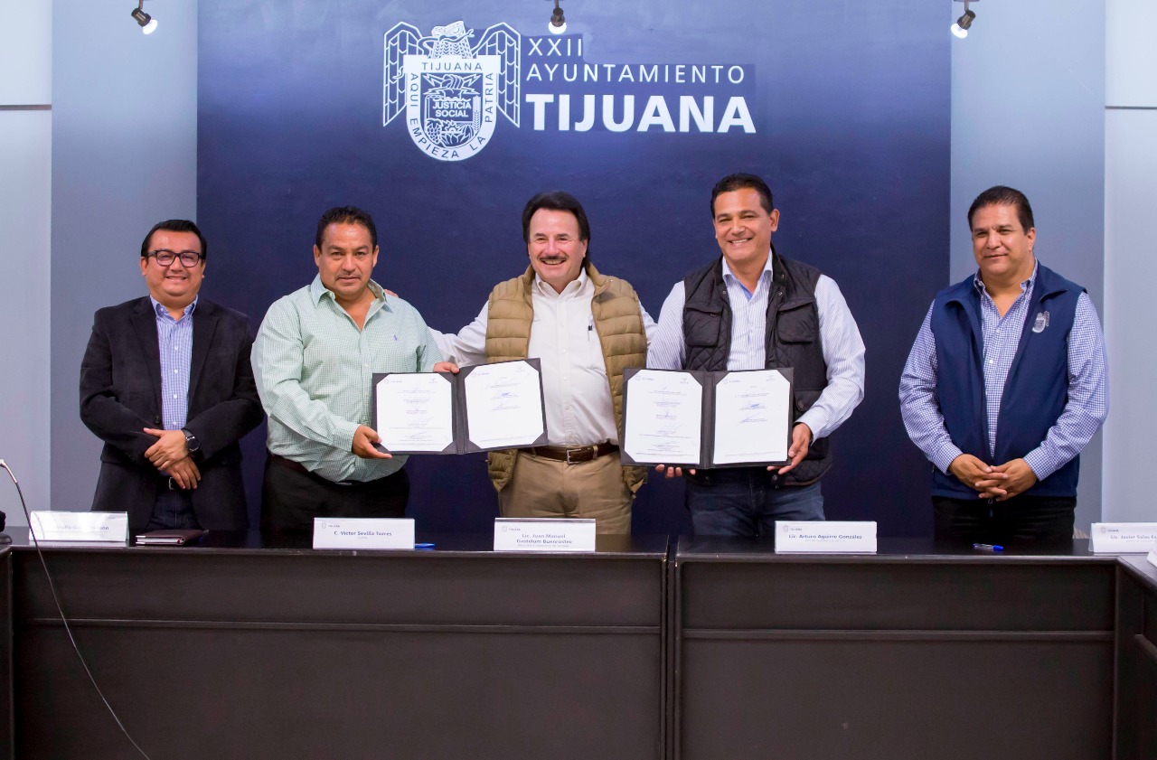En la firma del convenio participa del Secretario de Seguridad Pública, Marco Antonio Sotomayor; el regidor presidente la Comisión de Vialidad y Transporte; Arnulfo Guerrero, el regidor presidente de la Comisión de Desarrollo Social Eligio Valencia; Marco Antonio Romero Arizpe, regidor presidente de la Comisión de Asuntos Fronterizos; Arturo Aguirre González, representando al SITT de Tijuana SA de CV, y Víctor Sevilla Torres, de ALTISA.