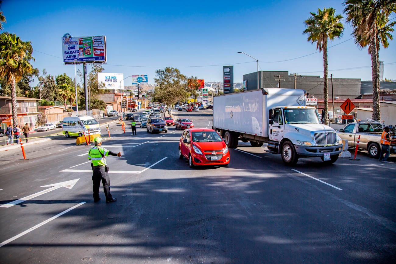 TIJUANA- Ya se encuentra habilitado el cambio de sentido en el puente Las Américas, en donde Inspectores de Tránsito Municipal están orientando a los conductores a estas nuevas modificaciones viales que ayudarán a reducir los tiempos de traslado hasta un 41% sobre esta vialidad.