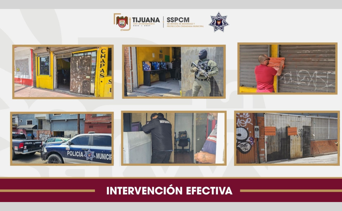 TIJUANA.- La Secretaría de Seguridad y Protección Ciudadana Municipal (SSPCM) informa que, como parte de la estrategia integral de seguridad impulsada por el presidente municipal, Ismael Burgueño Ruiz, orientada a recuperar la paz y tranquilidad de la ciudadanía y eliminar puntos generadores de violencia, la tarde del martes 27 de mayo se realizó un operativo para identificar y clausurar establecimientos con máquinas tragamonedas en la Zona Norte.