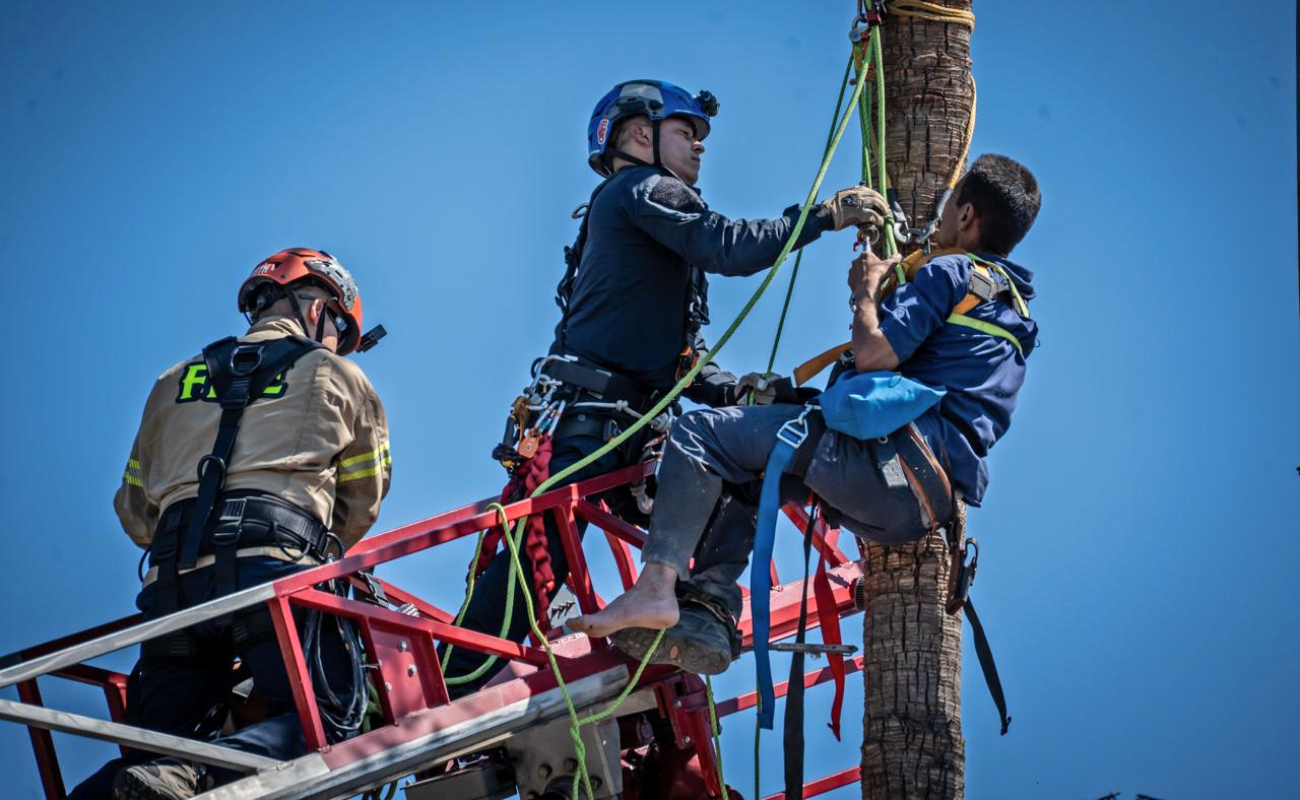 De acuerdo con Gabriel Balladares, encargado del área de Rescate y Emergencias Médicas de la Dirección de Bomberos Tijuana, el incidente fue reportado a través del número de emergencias, indicando que una persona se encontraba suspendida a varios metros de altura en una estructura de palmera.