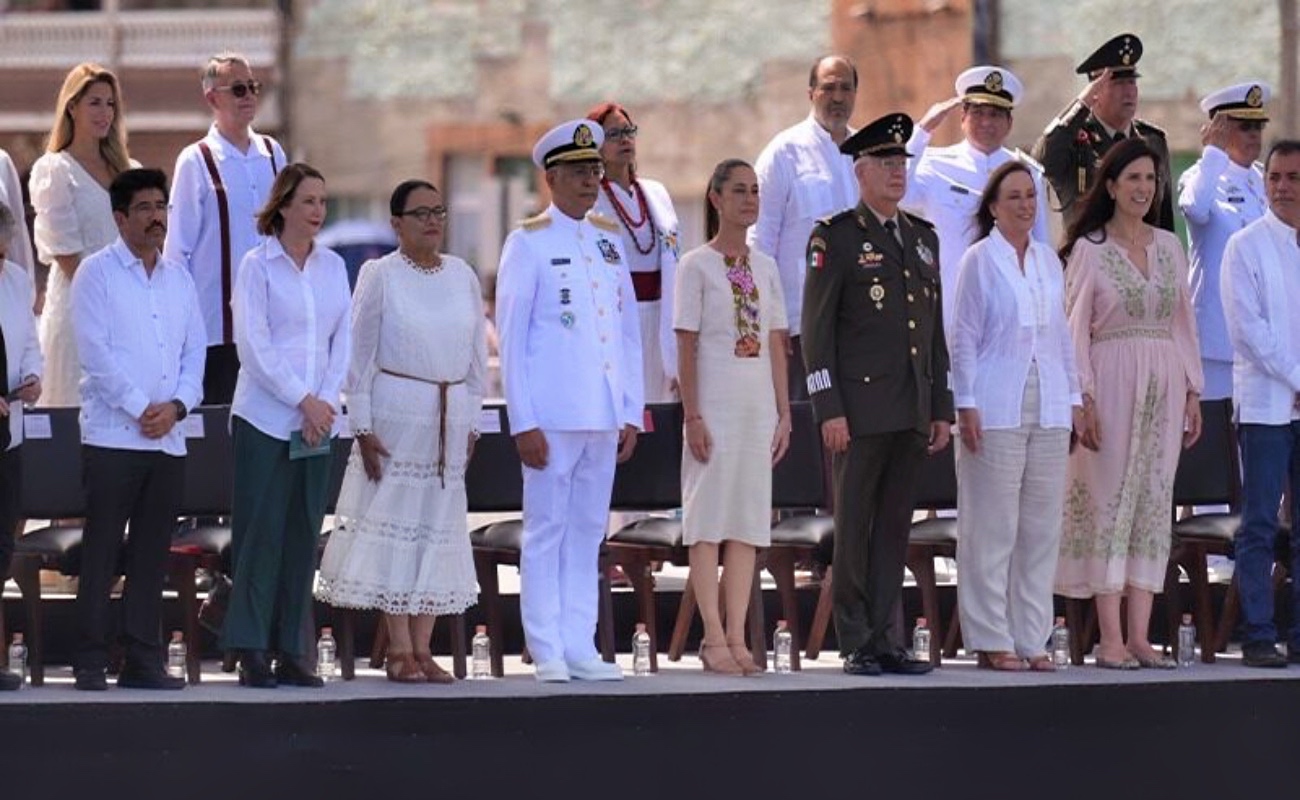 Durante la Conmemoración del 204 Aniversario de la Armada de México y el 201 Aniversario de la Promulgación de la Constitución de los Estados Unidos Mexicanos de 1824 en Veracruz, Sheinbaum Pardo felicitó a los titulares de la Secretaría de la Defensa Nacional (Sedena), general Ricardo Trevilla, y de la Semar, almirante Raymundo Pedro Morales Ángeles.