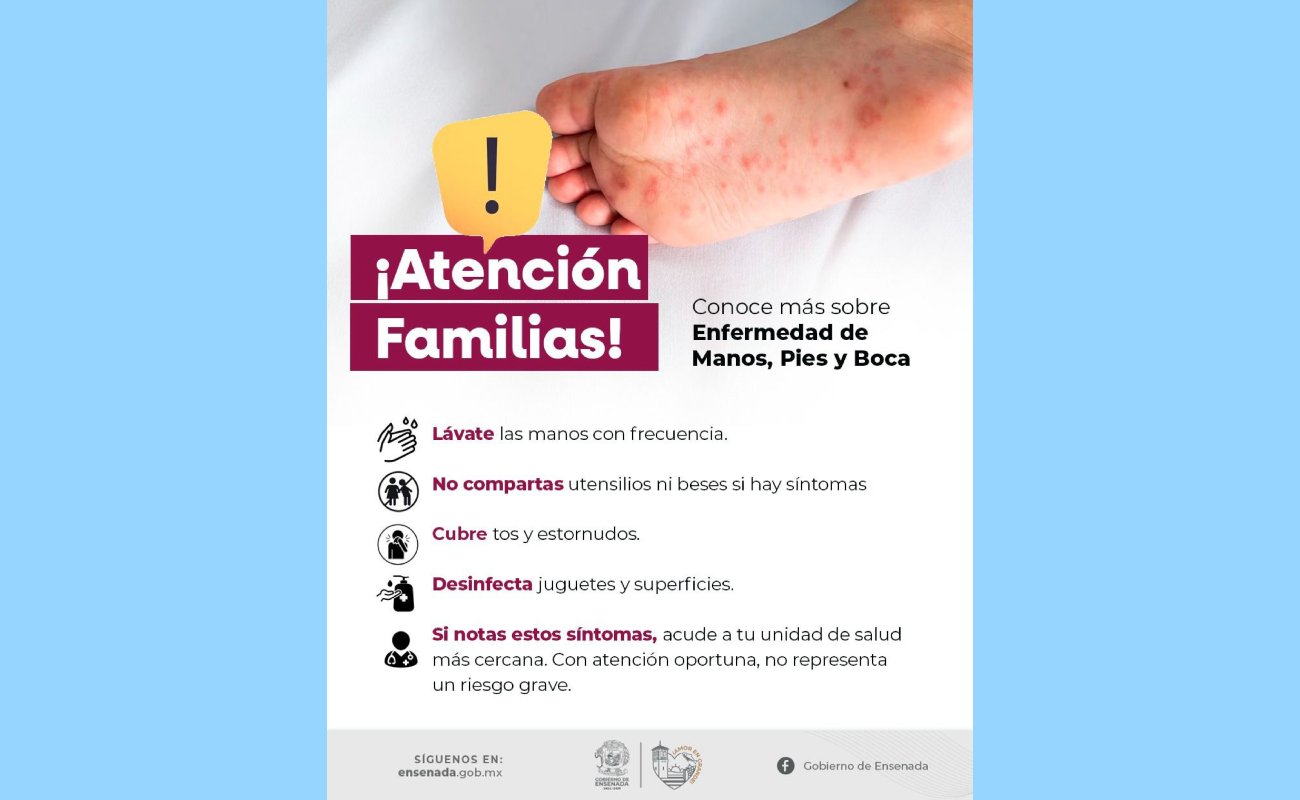 El Gobierno de Ensenada hizo un llamado a redoblar las medidas de higiene y cuidado, principalmente en la niñez para evitar contagios causados por el Virus Coxsackie