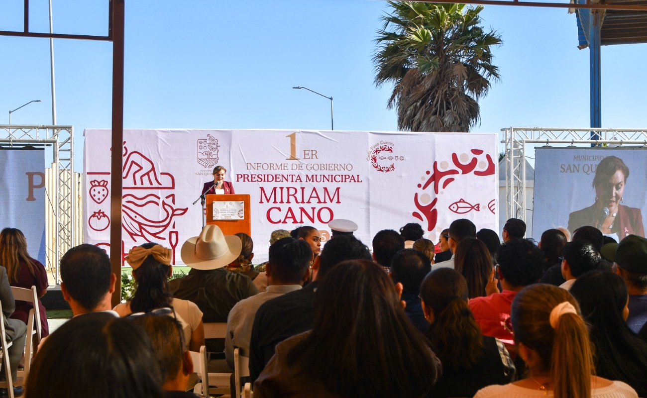SAN QUINTÍN.- La presidenta municipal de San Quintín, Miriam Cano Núñez, informó que el Ayuntamiento concluye su primer año de gobierno con avances en reglamentación, planeación, infraestructura, energía y digitalización, consolidando los cimientos administrativos del municipio más extenso del país.