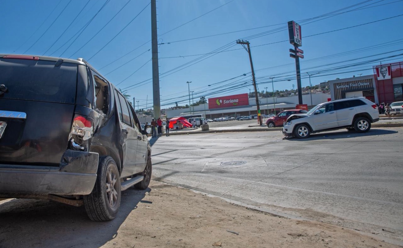 TIJUANA.- Un aparatoso accidente de tránsito se registró este domingo alrededor del mediodía en la colonia Los Pinos, sobre el bulevar Díaz Ordaz a un costado de la tienda Soriana y en dirección hacia la zona de la 5 y 10, donde dos vehículos resultaron involucrados.