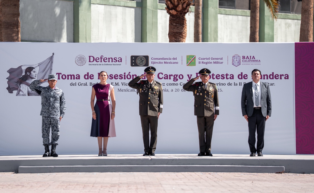 En la ceremonia estuvieron presentes el Comandante saliente de la II Región Militar, General de División de Estado Mayor José Roberto Flores Montes de Oca; la presidenta municipal de Mexicali, Norma Alicia Bustamante Martínez; la Fiscal General del Estado, María Elena Andrade Ramírez; el Comandante de la Segunda Zona Naval, Vicealmirante Juan Carlos Vera Minjárez; el secretario de Seguridad Ciudadana de Baja California, General Laureano Carrillo Rodríguez, así como autoridades de los tres órdenes de gobierno.