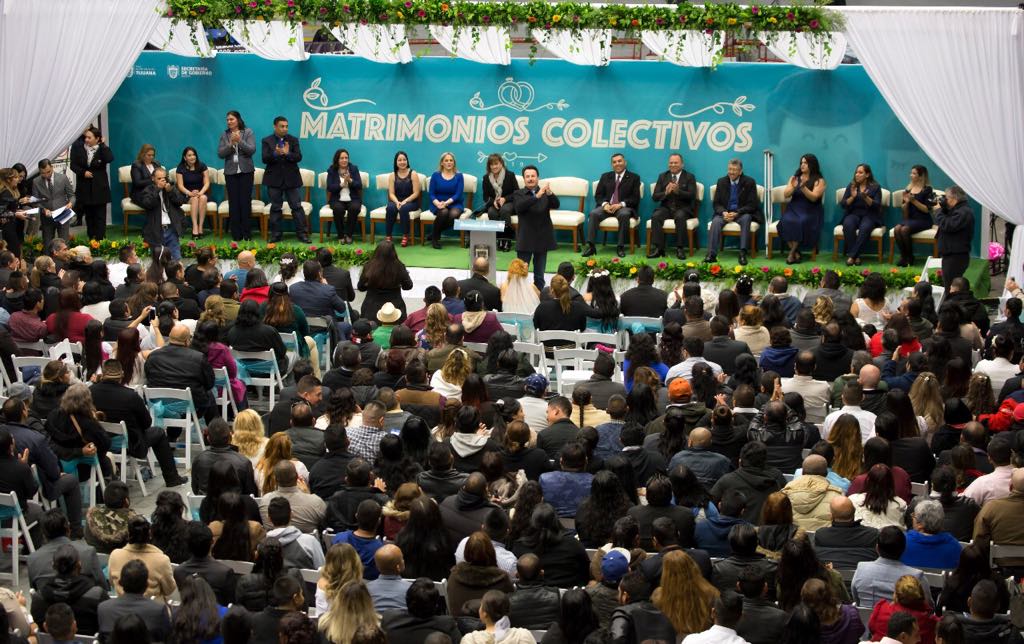 TIJUANA.- La fuerte tormenta de este jueves cambió la sede de la ceremonia, pero no el deseo de mil parejas tijuanenses de formalizar su unión y casarse en los matrimonios colectivos organizados por el Ayuntamiento de Tijuana en el marco del Día del Amor y la Amistad, este 14 de febrero.