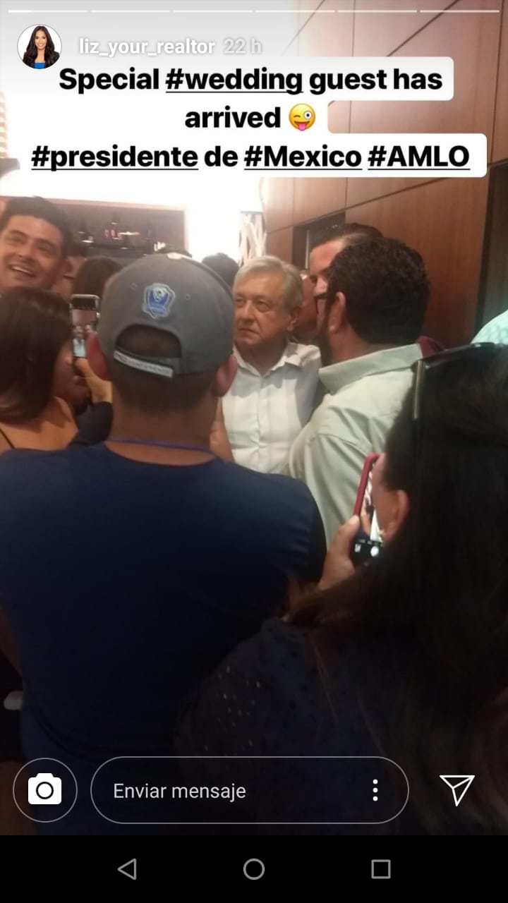 Fue en Instagram, donde la usuaria Liz García subió una foto con su pareja y el mandatario, misma que tituló "como cuando el Presidente llega a tu boda en Tijuana".