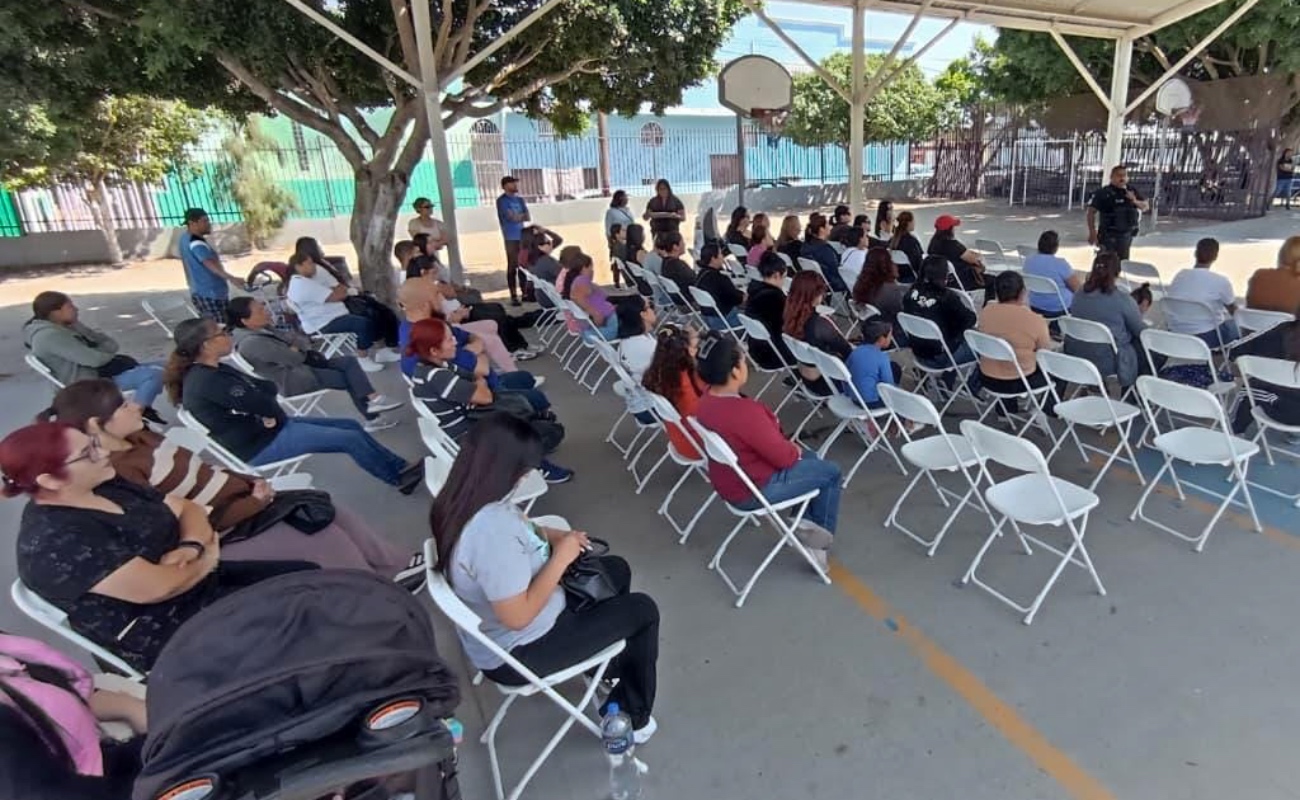 TIJUANA.- En seguimiento a las acciones de proximidad social y con el objetivo de fortalecer la prevención en el núcleo familiar, personal adscrito a la Dirección de Prevención del Delito de la Secretaría de Seguridad y Protección Ciudadana Municipal, acudió a las instalaciones de la escuela primaria Agustín Yáñez, ubicada en la colonia Sánchez Taboada Produtsa, donde se impartió la plática “Cómo Echar a Perder un Hijo”, dirigida a madres y padres de familia.