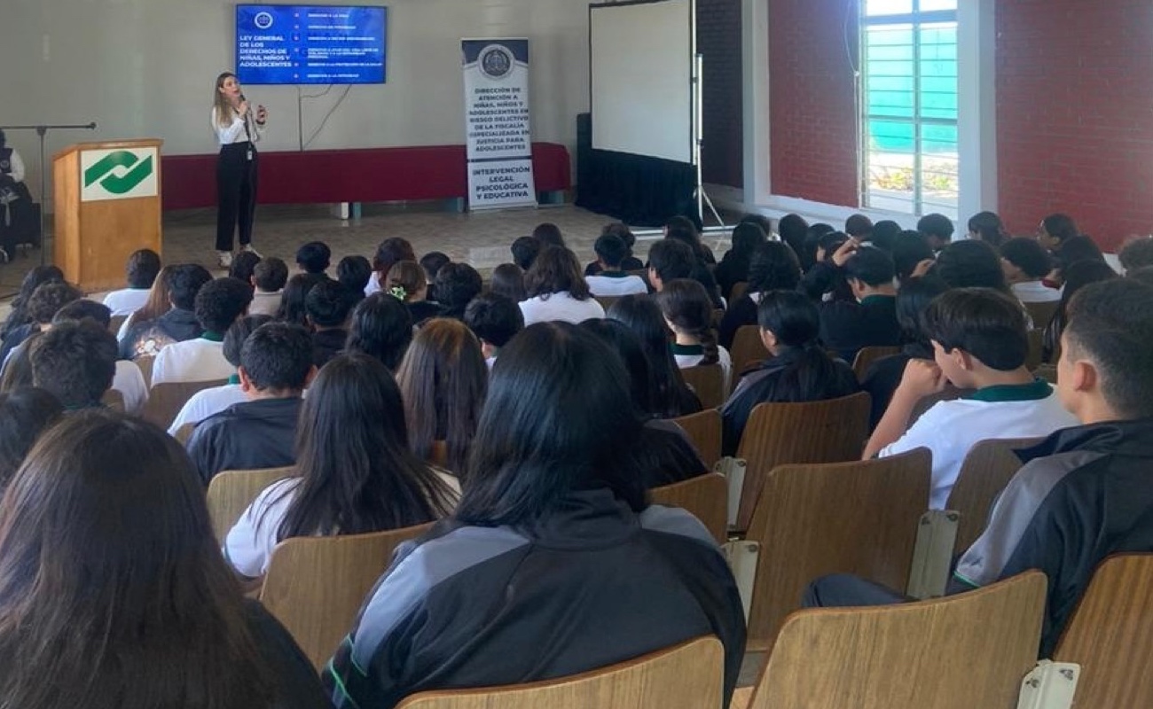 ENSENADA.- Como parte de las directrices orientadas a fortalecer el acercamiento con las juventudes, personal de la Dirección de Atención a Niñas, Niños y Adolescentes en Riesgo Delictivo de la Fiscalía Especializada en Justicia para Adolescentes, en coordinación con la Dirección de Atención Ciudadana y Justicia Alternativa, impartió talleres preventivos en planteles de nivel medio superior en Ensenada y San Quintín.