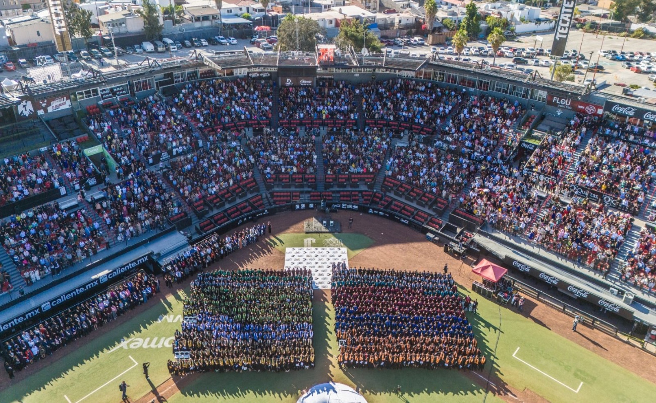 TIJUANA.- Para celebrar la culminación de sus estudios y presentarle a la sociedad a las 834 nuevas y nuevos profesionistas, que fortalecerán al sector productivo de Baja California, la Universidad Tecnológica de Tijuana (UTT) llevó a cabo el Acto Académico 2025 en el Estadio Toros.