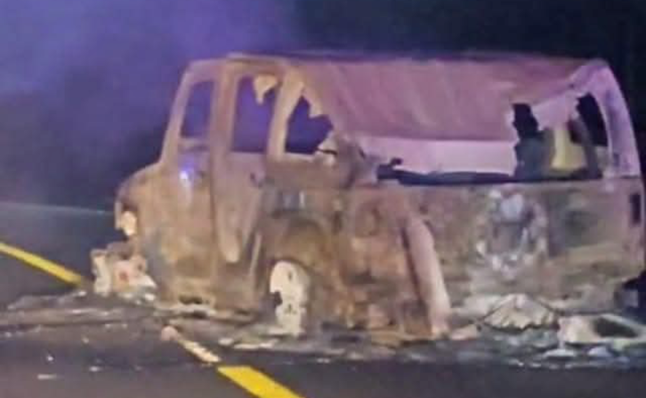 Dos cuerpos quedaron dentro de un vehículo calcinado y los otros cuatro en un pick up, a la altura del kilómetro 142 de la carretera Transpeninsular